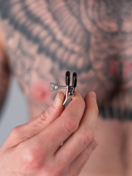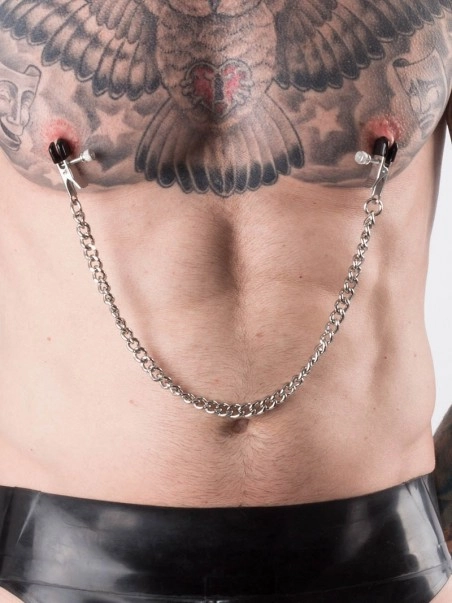 Ces pinces u00e0 seins sont parfaites pour les du00e9butants, mais aussi les plus avertis. On peut ru00e9gler l’intensitu00e9 en enlevant ou non les embouts de caoutchouc, et plus pru00e9cisu00e9ment gru00e2ce aux vis pru00e9sentes sur chaque pince. Il est u00e9galement possible de rajouter des poids gru00e2ce u00e0 la chau00eene de 31cm.