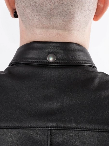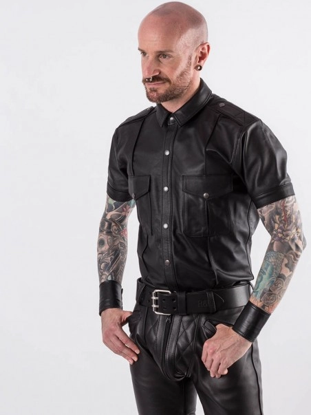 Taillu00e9e dans un cuir souple pour plus de confort, la chemise Slim Fit Bruthal se caractu00e9rise par une coupe tru00e8s ajustu00e9e. Le bouton pression u00e0 l’arriu00e8re du col assure un maintient parfait tandis que ses manches courtes sont resserru00e9es tout spu00e9cialement pour mettre les bras en valeur. Un incontournable de l’uniforme cuir.