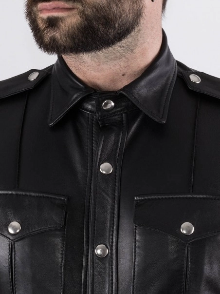 Cette chemise manches courtes calquée d’après le modèle des chemises d’uniformes américains dispose de deux poches sur le devant ainsi que d’épaulettes. Son cuir souple lui confère confort et légèreté. TaillesSML. Tour de poitrine (cm) 88-9696-104104-112.