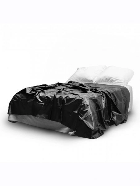 Protu00e9gez votre lit et votre intu00e9rieur avec ce drap noir en vinyle, entiu00e8rement u00e9change et ru00e9sistant aux lubrifiants et aux fluides.