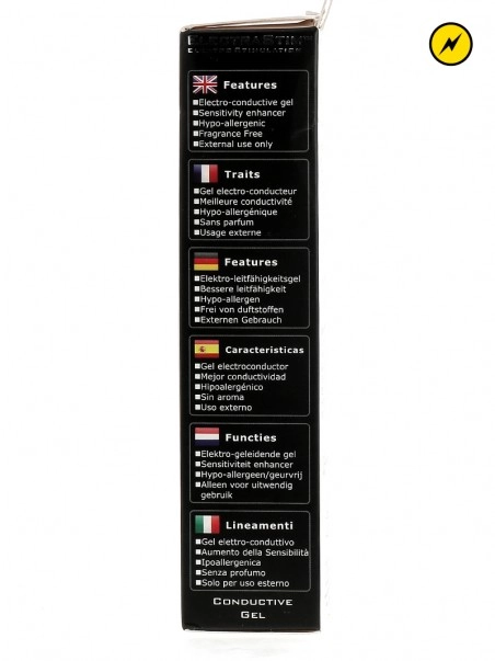 Le gel électro conducteur ElectraStim a été spécialement formulé pour être utilisé avec nos électrodes externes. En utilisant juste un peu de ce gel transparent, vous améliorerez la conductivité et augmenterez les sensations pendant le jeu. Appliquez simplement une quantité de la taille d’une goutte à la partie externe de l’électrode en contact ave la peau avant de le connecter à votre unité de contrôle. Notre gel est préconisé pour un usage avec des électrodes externes : patchs, cockrings, pinces, etc … .