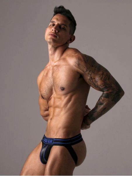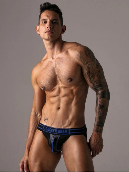 Notre su00e9duisant jockstrap taille basseu00a0de la marque espagnole Locker Gear est conu00e7u pour faire du sexe : la poche frontale est u00e9quipu00e9e du2019une glissiu00e8re, et les deux sangles u00e0 l’arriu00e8re soutiennent et valorisent vos fesses.