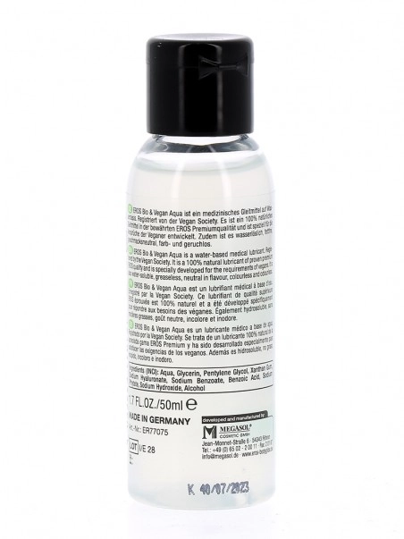 EROS Bio & Vegan est un lubrifiant intime bio u00e0 base d’eau qui est fabriquu00e9 u00e0 partir d’ingru00e9dients de haute qualitu00e9 pour assurer un rapport sexuel confortable en toute su00e9curitu00e9. Quelques gouttes suffisent pour favoriser lu2019hydratation des muqueuses.