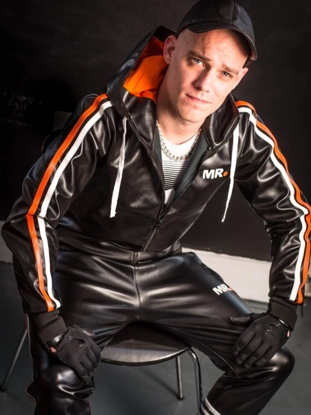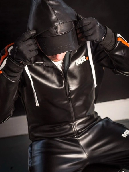 Notre hoodie de sport nouvelle gu00e9nu00e9ration qui cru00e9e un look fu00e9tiche et sportif. Fait dans un simili cuir de qualitu00e9, avec des finitions soignu00e9es, notre hoodie fetish Mr Riegillio offre un confort agru00e9able, et un entretien facile. Cette superbe veste de survu00eatement aux rayures latu00e9rales est u00e9quipu00e9e d’un zip et d’une capuche avec cordon de serrage.