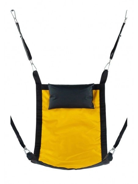 Ce sling en tissu est fabriqué en polyester et livré avec les sangles de chevilles, 4 mousquetons d’attache et un coussin.