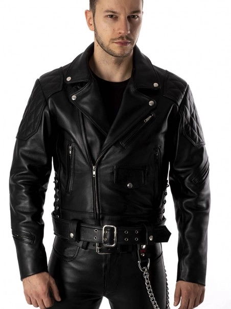 Notre Perfecto Bruthal Gear en cuir s’approche de la perfection. Il a été pensé pour qu’il vous apporte confort et style. Il est fait dans un cuir épais de qualité qui ne craint pas les années. La finition est soignée. Le blouson est fabriqué dans nos ateliers, avec un souci particulier apporté aux détails. Il est doublé et dispose de plusieurs poches intérieures et extérieures. L’ajustement à la taille se fait par des lacets sur les côtés ainsi que son ceinturon double boucle. Les manches sont équipées d’une fermeture éclair au niveau du poignet pour en régler la largeur selon votre souhait.