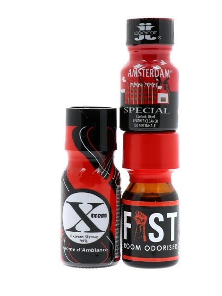 Associez 3 les molu00e9cules avec ce lot de poppers pour un plaisir toujours plus fort et plus poussu00e9. Dans ce lot vous trouverez 3 poppers pour le Fist-Ficking avec chacun une molu00e9cule diffu00e9rente.