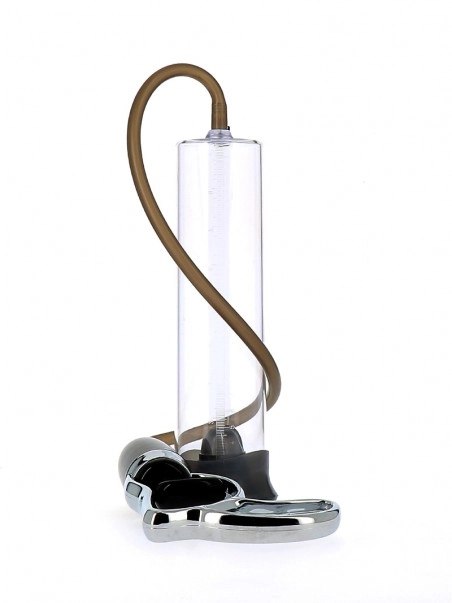 La pompe à sexe est composé d’un cylindre, un joint en Silicone et du poignée reliée au cylindre par un tuyau. Le vide d’air se fait par pression sur la gâchette.
