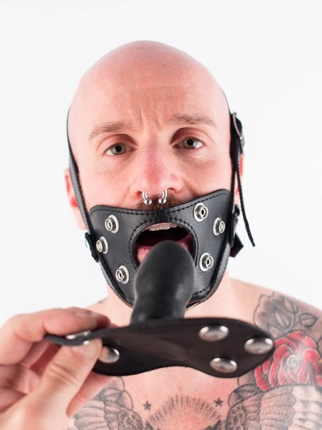 Le bu00e2illon est en cuir. Le plug d’une longueur de 5 cm est en caoutchouc. Cet u00e9lu00e9ment s’adapte u00e0 la museliu00e8re en cuir ou au harnais de tu00eate (vendus su00e9paru00e9ment).