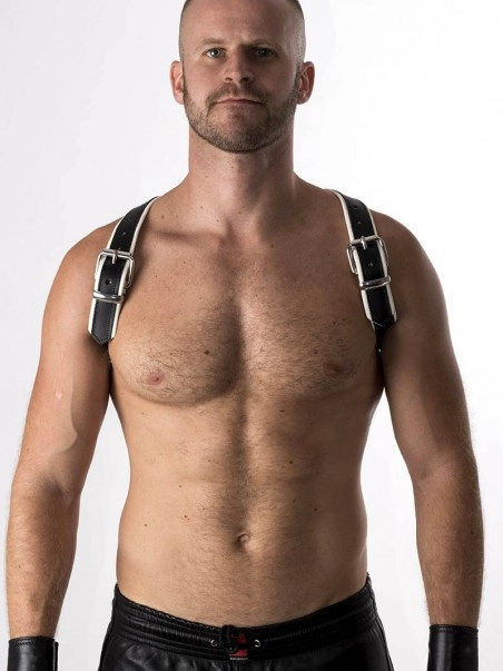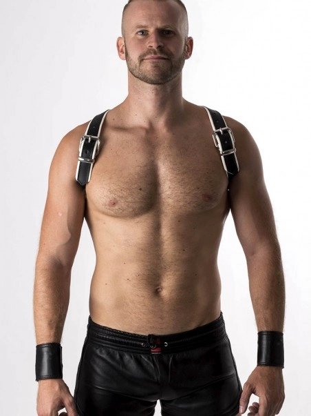 Notre harnais en cuir u00c9paule a u00e9tu00e9 conu00e7u pour accentuer la forme en V de votre buste. Comme tous les harnais gay, cet accessoire SM exacerbe notre virilitu00e9.