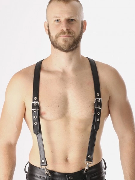 Nos bretelles fines en cuir souple disposent de fixations permettant de les attacher aux passants du pantalon. Leur forme en Y dessine le dos et met en valeur la carrure des u00e9paules.