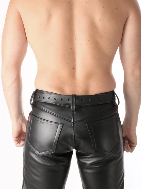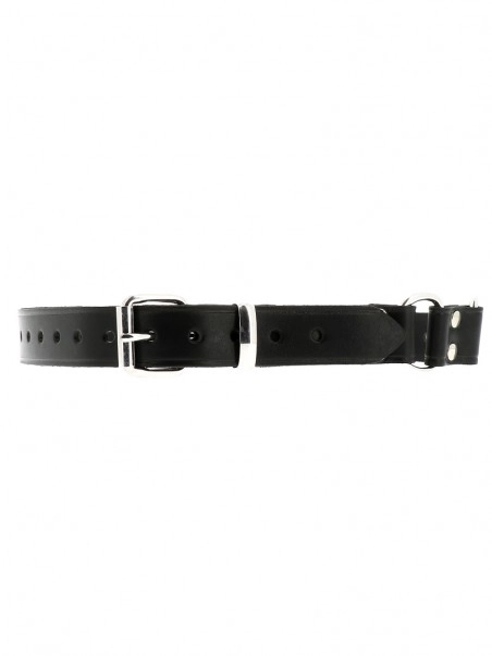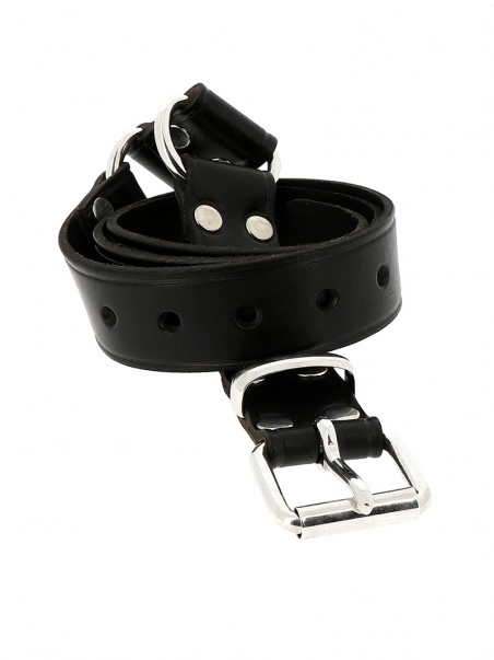 Ceinture en cuir avec 2 anneaux en forme de Du00a0Largeur 4cm.Cette ceinture se transforme aisu00e9ment en paire de menottes u00e0 l’aide des 2 anneaux la composant.Taille S (95cm), M (100cm), L(105cm). XL (110cm), XXL (115cm)
