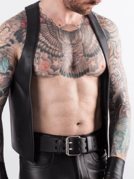 La coupe de notre célèbre gilet en cuir est très sexy. Elle laisse votre buste et les tétons exposés au regard des garçons vicieux. Le gilet est fait dans un cuir souple et résistant. Poche intérieure zippée.