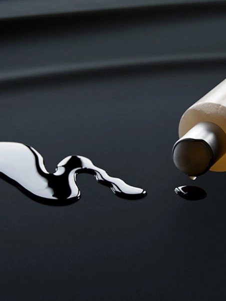 La surface supu00e9rieure noire satinu00e9e sans couture renforce lu2019aspect fetish du drap.