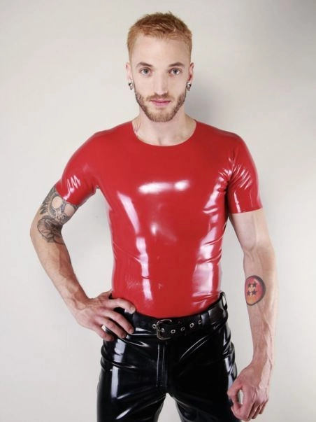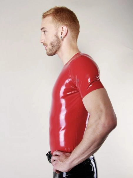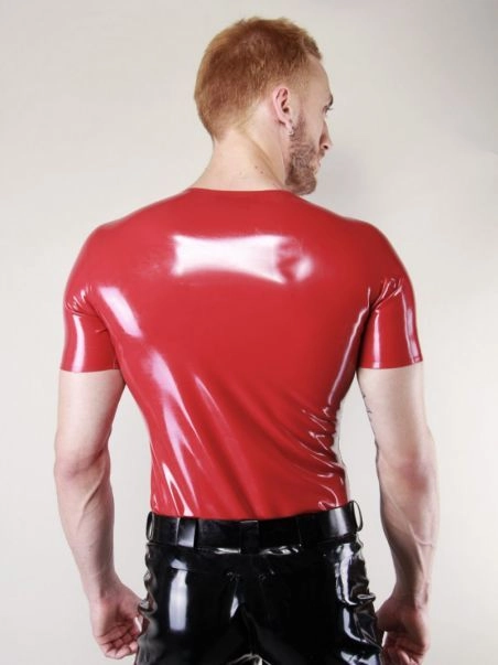 Complu00e9tez votre look fetish avec ce tshirt rouge, un vu00e9ritable indispensable u00e0 avoir dans son vestiaire latex.