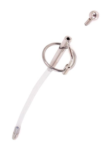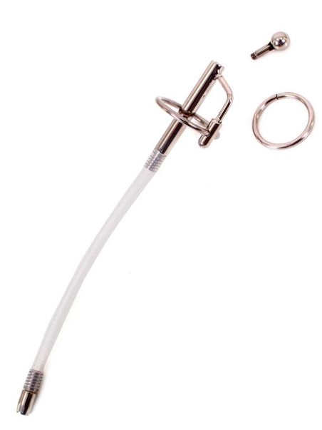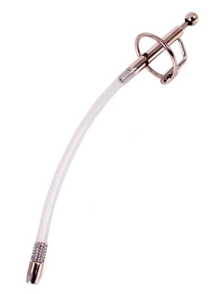 Ce grand cathu00e9ter uru00e9tral commence par une pointe en acier inoxydable d’un diamu00e8tre de 8 mm et d’une longueur de 21,5 cm, suivie d’un tube transparent en Silicone se terminant par un bord en acier. Inclus avec 2 anneaux de gland en inox d’un diamu00e8tre intu00e9rieur de 25 mm et 32 u200bu200bmm.