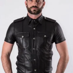 Mr. Riegillio Chemise En Cuir Manches Courtes – Mr Riegillio